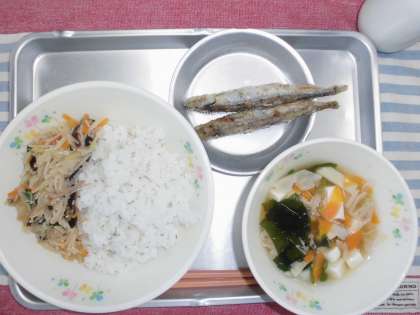 今日は、ビーフン炒めを提供しました。ビーフンは、中国から伝えられた食べ物です。「米」の「粉」と書いて「ビーフン」と読みます。春雨やくずきりとは違い、少し黄色味がかっているのが特徴です。キャベツやニラ、豚肉と一緒に炒めました。ごはんのおかずになるように、しっかりと味をつけました。