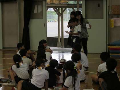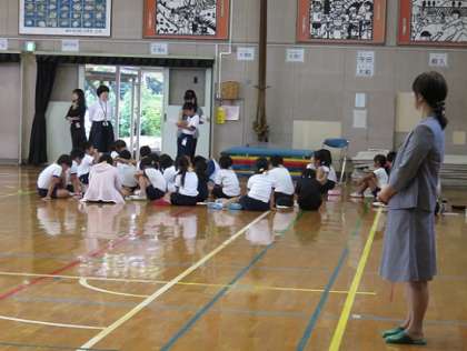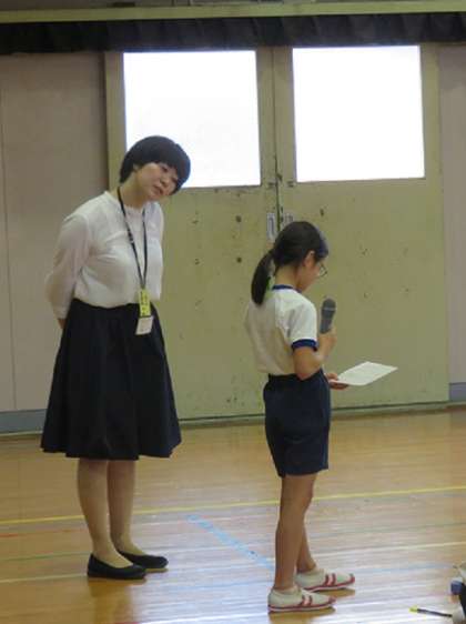 グループでの話し合い活動で高められた自分の考えや思ったことを、学年のみんなに発表していました。