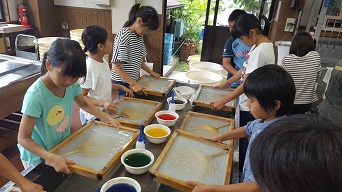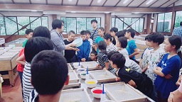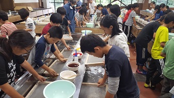 予定していた車山のハイキングは、残念ながら雨のために中止になりました。雨天時の行程で、「信州立岩和紙の里」でうちわ作りをしました。施設の方から作り方を教えていただきながら、オリジナルうちわ作りを楽しんでいました。お土産を楽しみにしていてください。