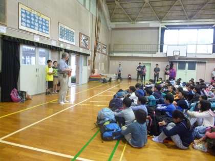 長いバス旅で、到着してから体育館のトイレを使う子が多かったのですが、最後に確認したところスリッパがきちんとそろえてありました。ある児童が一言、「これも、今回の移動教室で学んだことです。」と。子供たちは楽しい体験だけでなく、集団行動のあり方や公共のマナー、そして、気品ある行動の仕方などたくさんのことを学んだようです.