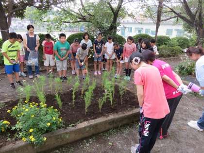 環境委員会と花の会の皆さんで植えられた草花が、また一つ、横一小を飾ってくれます。