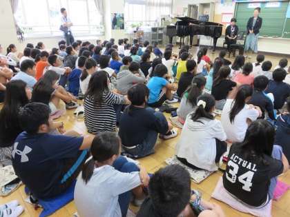 平井李枝先生のお話を、6年生の子どもたちだけでなく、本校の先生方も初めて知ることばかりなので、聞き入っていました。