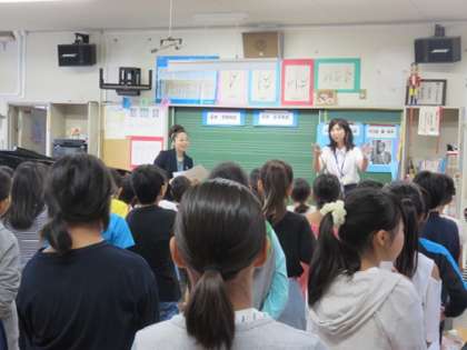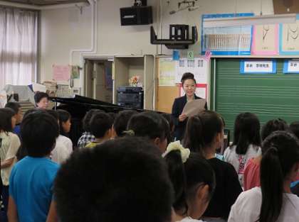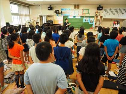 そこで、6年生全員で、斉唱したあとに、二部合唱で校歌を歌いました。