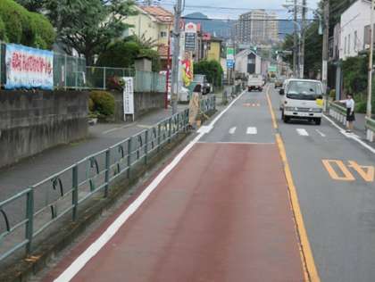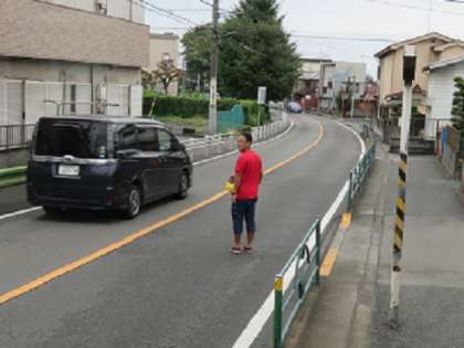 ※写真は、子どもたちを乗せたバスが、本校の駐車場から北野街道に出るときのものです。バスがスムーズに出られるように、本校の先生方が、黄色い旗を持って交通整理をしています。5年生の移動教室に限らず、多くの場面で行っています。
