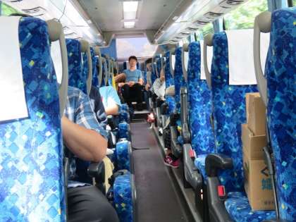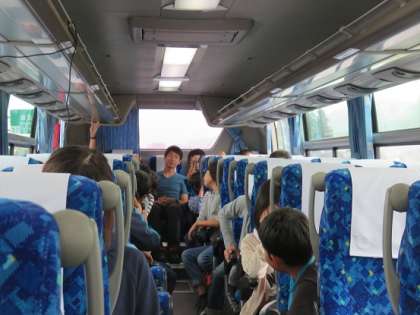 ※写真は、付き添いの他の学年の先生も一緒にバスレクをしているところです。