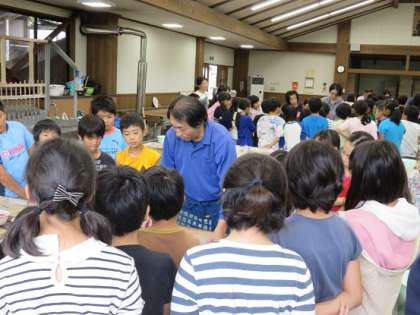 私は、うちわづくりをしました。まず、和紙の里の人が作り方を教えてくれました。その教えてくれる人がすごくおもしろかったです。完成したものは干して、学校まで届けてくれると思います。私は山と太陽のもようです。楽しみです。
