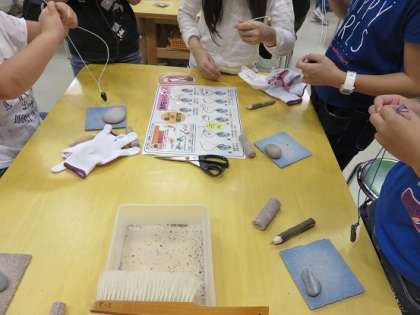 黒曜石ミュージアムにいって、黒曜石を削りました。黒曜石がかたくて、削るのが、難しかったです。