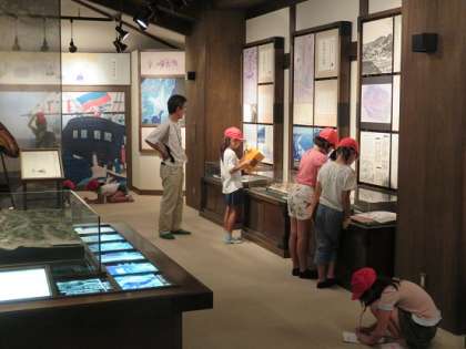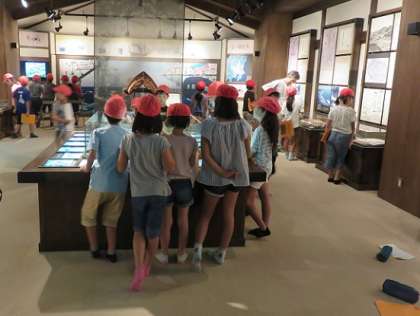 室内でも担当の方からのお話の後、子どもたちは、展示さてている物を思い思いに見学をしたり、しおりに書き込んだりしていました。