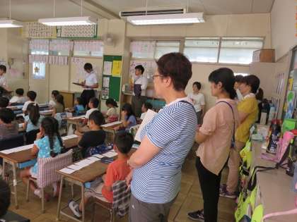 子どもたちに、よりよい『伝える力』を培うためには、教員の授業力の向上や授業改善が欠かせません。この授業の様子を、校内のたくさんの先生方が参観をしていました。