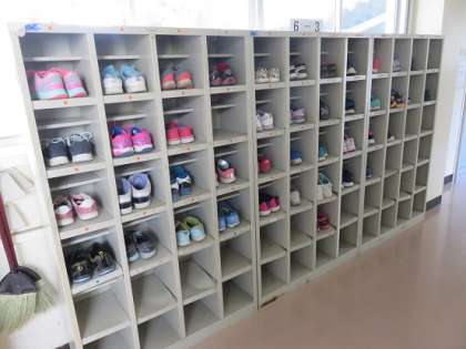たとえば、子どもたちが使っている『靴箱』です。子どもたちの気持ちがイライラしていたり、毛羽立っていたりすると、靴が雑に入れられたりしています。