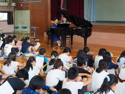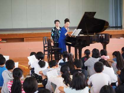 6年生が考えた言葉をつなげた“詞”に、平井李枝先生が、メロディーを考えて演奏をして、子どもたちに聴かせてくれました。