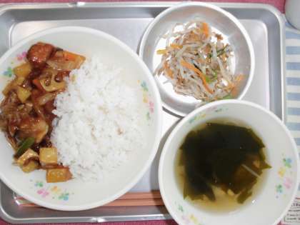 今日は、海外友好都市である「韓国始興市」で食べられている料理を、給食にアレンジして食べてもらいました。