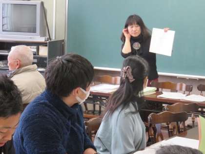 漢字検定の受験の申し込みの整理や漢字検定本部との連絡などの事務的なことを中心となって進めている副校長先生の説明を受けて、各係が円滑に進められています。