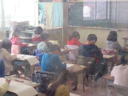ほかの教室も、鉛筆の書く音が聞こえるだけでした。