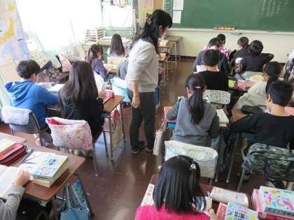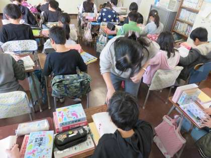 子どもたちの辞書引きの活動を、担任の先生はこまめに机の間を回って支援していました。