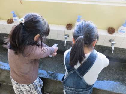 1年生の流し台の所でも、頑張っている姿が見られました。
