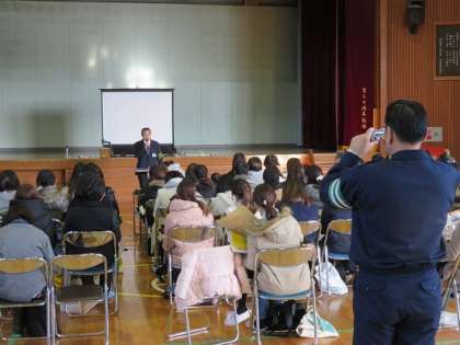 交通安全、不審者対応などでお力をいただいている高尾警察署のお巡りさんやスクールサポーターの方々にもお話をいただきました。