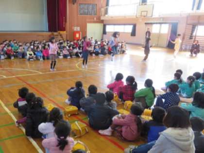 1年生は、授業で習ったなわとびやけん玉などの技を、年長さんに見てもらいました。