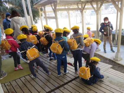 八王子ひまわり保育園の年長さんは、園長先生や担任の先生と帰り支度を整えて、保育園に帰られました。