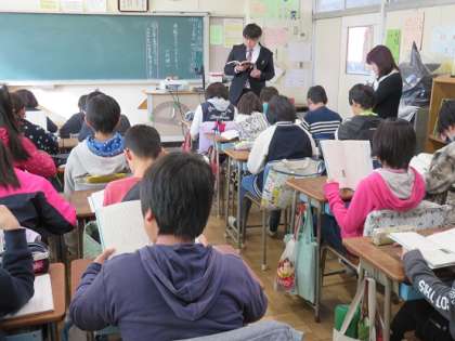 説明文を、接続詞や形式段落の要旨などを手がかりに、3つの意味段落に分ける学習をしていました。意味段落分けに先立って、子どもたちが説明文の文章を声を出して音読をしました。
