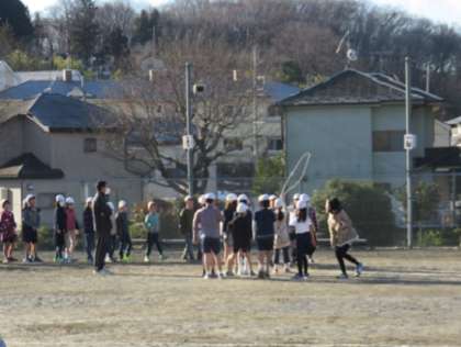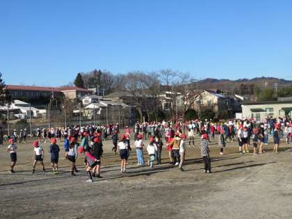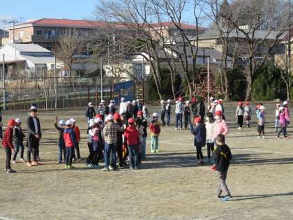 二度の雪で、なかなか使えなかった校庭が、ようやく校庭全面が使えるようになりました。そして、今日、全校児童での『なかよし集会』ができました。6年生と1年生などと異学年での遊びの機会です。