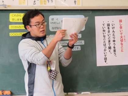 話すことに自信がない子どもたちが、少しでも不安にならないようにと、ワークシートも用意してあったので、子どもたちは、書き込んでいました。