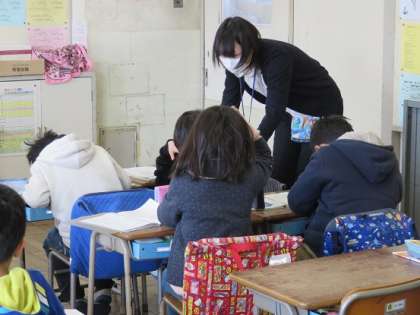 自分の考えが、上手にまとめられない子には、先生が机の傍に行って、細やかに声かけをしていました。