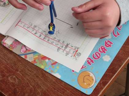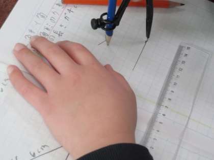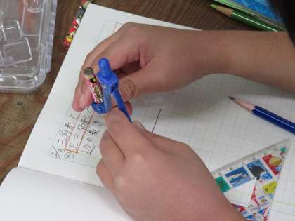 まだ使い慣れていないコンパスを使って正三角形を作図していました。