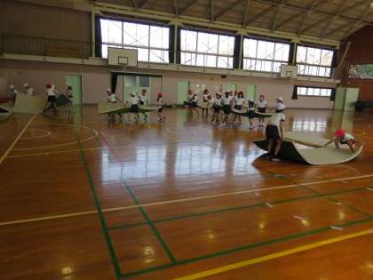 最後に、子どもたちはみんなで力を合わせて、手際よくマットを片付けていました。