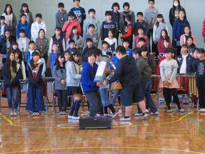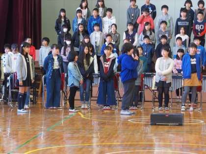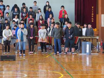 創立120周年記念の最後の取組、タイムカプセルが行われました。全校児童と、昨年度の6年生が、30年後の自分にお手紙を書き、それを手作りのタイムカプセルに詰めました。6年生を送る会では、6年生から、次の最高学年になる5年生へ、愛唱歌「ゆめのはな」の楽譜と共にタイムカプセルが託されました。