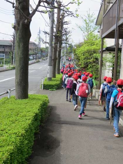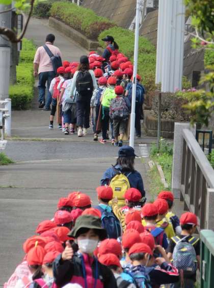 より上手な集団行動ができるように、子どもたちは先生のハンドサインにも気を付けながら歩くことができるようになってきていました。