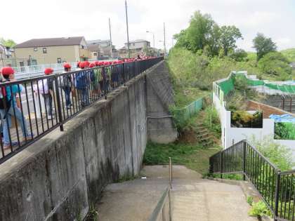 トンネル工事の様子を、子どもたちは興味深げに見ていました。