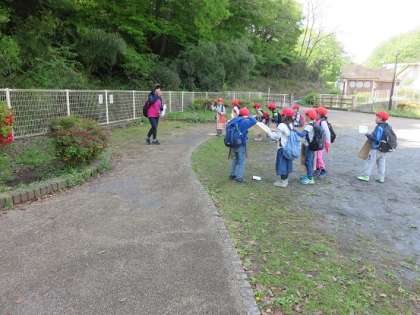 25のグループに分かれた子どもたちは、先生の順番に呼ばれながら公園の上の広場に向かって出発していきました。