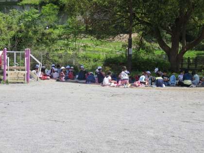 そして、準備が終わってグループから、係の子が合図して、お家の人が作ってくれたお弁当を美味しそうに食べていました。