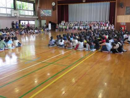 一年生からも、お礼の気持ちをこめたて、『どきどきドン一年生』の歌がプレゼントされました。一年生の元気な歌声が聴かれました。