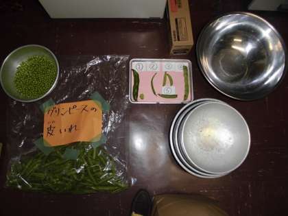 栄養士さんが、いろいろな食材を準備してくれていたので、2年生の子どもたちは、とても楽しそうに食育の学習ができていました。そして、実際のさやむきも一所懸命に取り組んでいました。