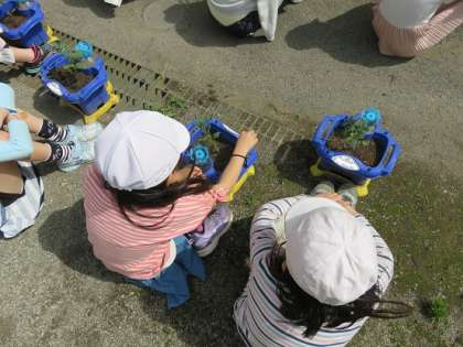 子どもたち一人ひとりが、自分の苗を大事そうにお世話をしていました。