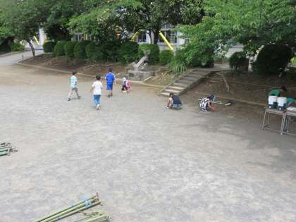 子どもたちは、校庭の小石だけでなく、植え込みのそばの石も集めてくれていました。
