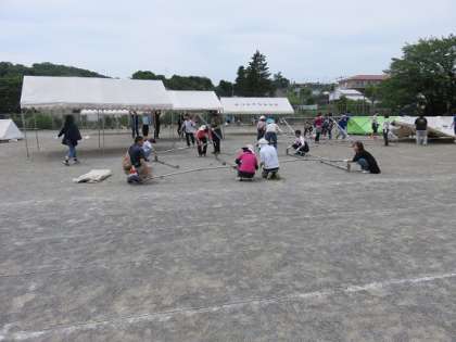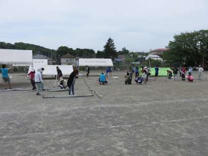 554名の子どもたちの運動会での熱中症対策の“日よけ用テント”の設営は、今から4年前より行っています。学区内のゆりのき台自治会さんより7張りのテントを、そして、児童養護施設こどものうち八栄寮さんより6張りをお借りしています。