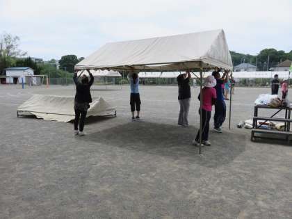 児童用の日よけテントの設営だけでなく、本部、来賓、優先(敬老)席用のテントの設営も行うことができました。