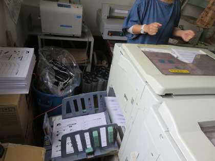 この日は、3年生以上の子どもたちが取り組んでいる、本校の学力向上の手立ての一つとなっている『家庭学習チャレンジカード』の印刷をしてもらっています。子どもたちが次の一枚と枚数が進んだときに、すぐに次の一枚がもらえるように、準備してもらっていました。