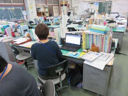 学力調査の数値の入力などとともに、引き渡し訓練などの各学級の名簿の入力や先生が行った入力でのご入力がないかの確かめなどの作業もしていただいています。先生方は、子どもたちを下校すると、各会議や打ち合わせと、教材準備のほかに、多くの事務作業を行います。この事務作業が少なくなり、子どもたちの活動の準備などに時間を使うことができます。