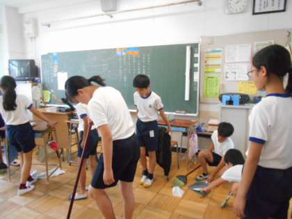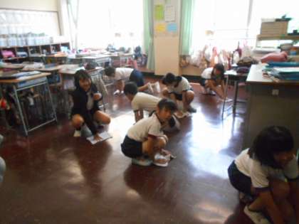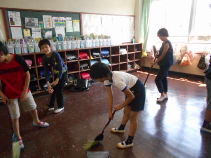 すみれ学級の6年生は、それぞれの交流学級の掃除の仕事に、お友達と一緒に行っています。給食時間の交流で、一緒に給食を食べた後、みんなと協力して、クラスの掃除をがんばっています。