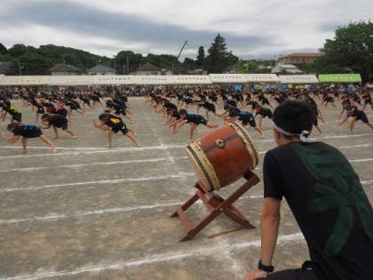 3・4年生の子どもたちは、恒例の『横一ソーラン』の表現活動をしました。去年、この『横一ソーラン』を経験している4年生が、3年生のよいお手本になったり、教えてあげたりして、練習を進めていました。