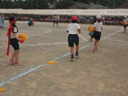 横一小の子どもたちの種目だけでなく、来年度小学校に入学予定の年長の子どもたちの種目『たからひろい』も行われました。各学年の種目とは違い、事前の練習のない種目で、参加する年長さんの子どもたちも戸惑うこともあると思われます。しかし、今年で3回目を迎え、年を重ねるごとに、スムーズに進めることができました。参加されたみなさん、ありがとうございました。