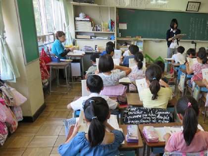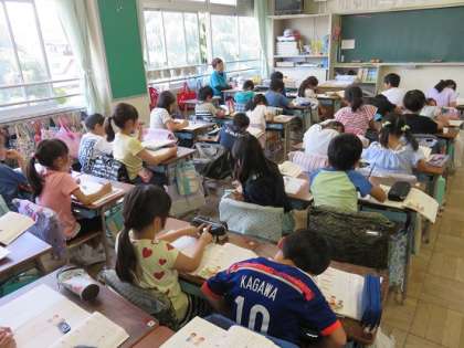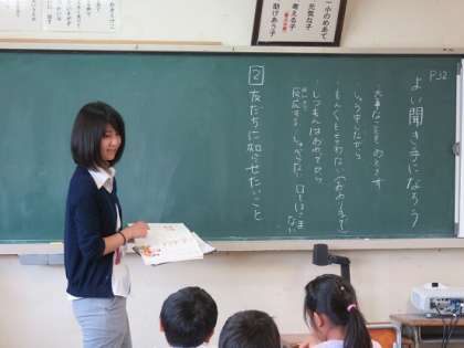 『よい聞き手になろう』の題材について、国語の学習が進められていました。本校では、教科の指導とともに、全校で、子どもたちが話をしっかりと聞き、内容が確かに聴き取れるように、さまざまな場面を通じて子どもたちに指導を進めています。
