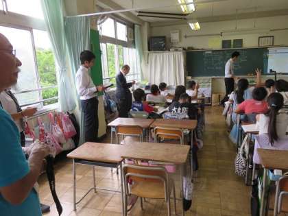 実習生の学生さんの研究授業でも、本校が全学級共通して取り組んでいる『ハンドサイン』を活用している様子を、指導担当の教員は見て、その効果などを把握していました。