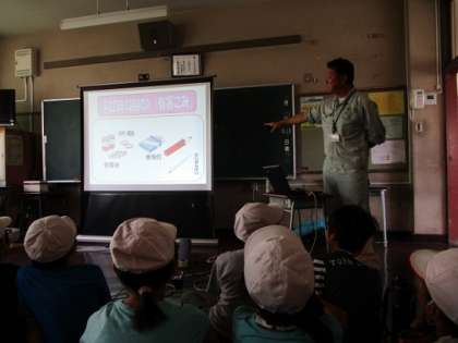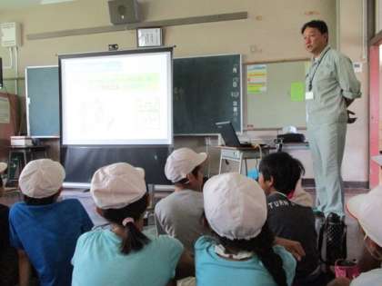 教室では、パソコンの映像をもとに、ゴミについての学習をしていました。