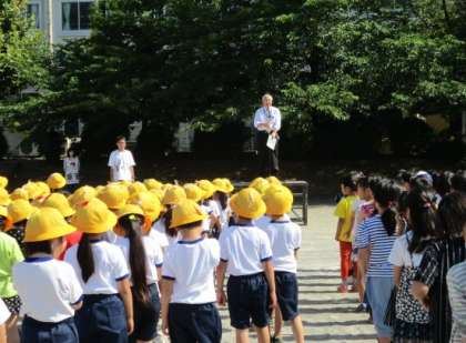 この日の児童朝会は、校長先生のお話(校長講話)でした。6月になって初めての児童朝会でしたので、全都的に取り組まれている『ふれあい月間』につながるお話がありました。
