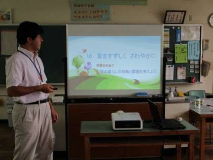 通常の教室だけでなく、本校では、特別教室の授業でも書画カメラ等を活用しています。家庭科の専科の教員も活用しているので、子どもたちは、活動した授業が当たり前のように感じて授業を受けています。